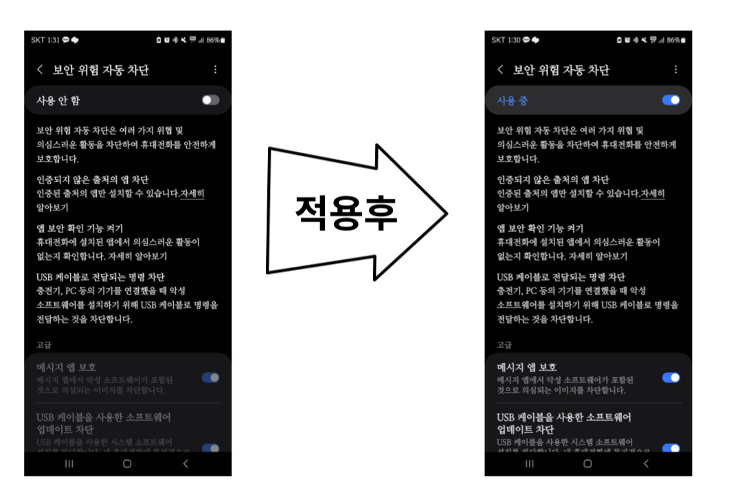 아이폰은 APK 설치파일이 다운로드가 안되는데 ,,, 갤럭시는 설정에서 차단을 해야 한다는 영상을 보고