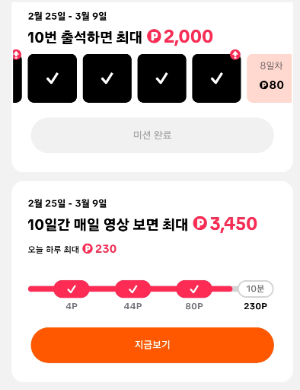 영상 볼때 미션도 같이 하면서 보면 포인트가 더 쌓이더라고요