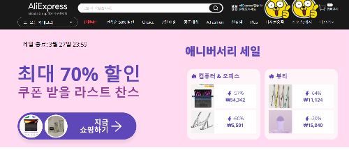 쿠팡을 위협한다는 알리익스프레스가 27일까지 세일을 해요