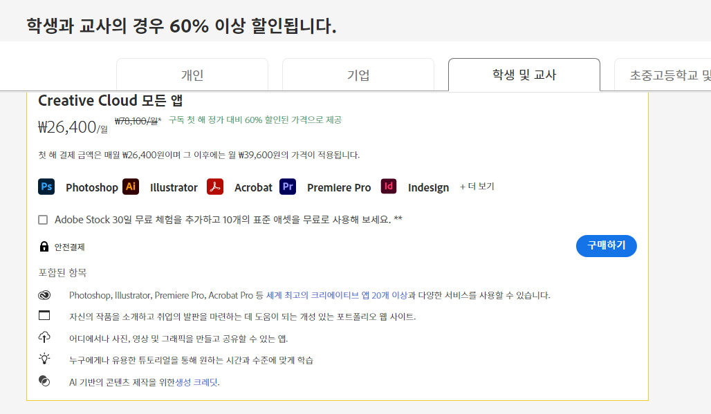학교에서 만든 학생이메일로 해서 계정을 만들고 결제를 진행하면 그 뒤에 학교 관련된 사항을 입력 하면 되어요