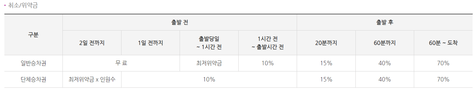 출발 1일 전까지 : 400원 (구매일포함 7일 이내 환불시 무료)