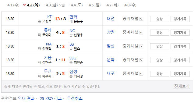 4월 2일 프로야구 경기 결과에 대해서 알아 볼려고 해요